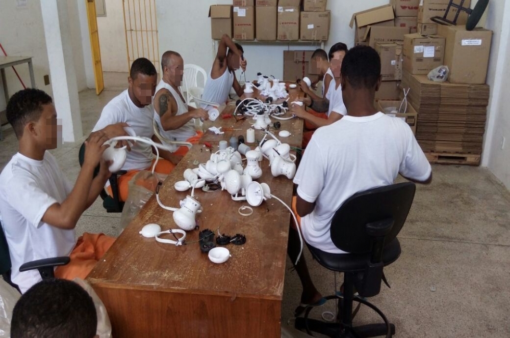 Os internos do Complexo Penitenciário Dr. Manoel Carvalho Neto (Copemcan) começaram a trabalhar na Hydra Corona, fabricante de chuveiros elétricos que montou uma unidade fabril dentro do presídio, na última segunda-feira, 21. A princípio, oito internos que têm bom comportamento e concordaram em trabalhar, atuam na linha de montagem e desmontagem dos aparelhos. Eles recebem um salário mínimo por mês e ainda são beneficiados com a remissão da pena. Ou seja, para cada três dias trabalhados têm um a menos na pena.