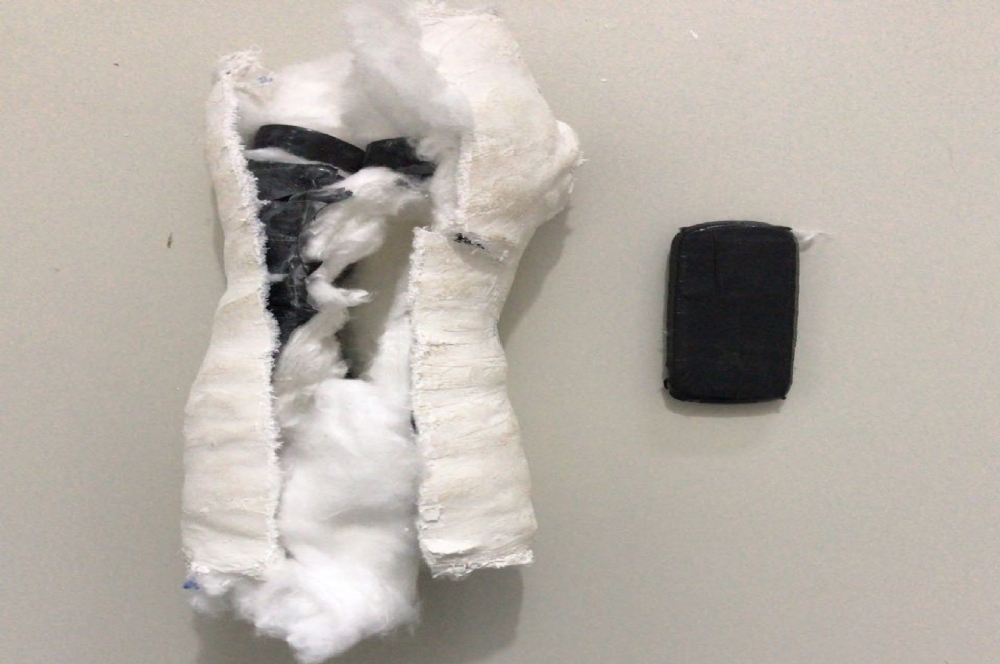 Aparelho celular escondido dentro de um gesso (Fotos: SSP)