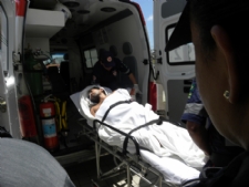 O cabo da Polícia Militar Jailton Pereira, que atuava como motorista do presidente do Tribunal Regional Eleitoral (TRE), desembargado Luiz Mendonça, que ficou ferido em atentado no dia 18 de agosto, acaba de ser transferido do Hospital de Urgência de Sergipe (Huse) para o Hospital da Polícia Militar (HPM). Momento da transferência (Foto: Aldaci de Souza/Portal Infonet)