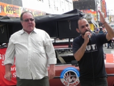 Ele lembrou que desde o final de fevereiro que as categorias vêm tentando negociar com o patronato a Convenção Coletiva 2010-2011 com avanços para os trabalhadores. “Em lugar disso, os patrões rasgam a nossa pauta e só apresentam o que lhes interessa: mais trabalho, criação de banco de horas, retirada de direitos e apenas reposição da inflação, com aumento real zero para as categorias. Dessa forma, não há como negociar”, ressalta. George Washington (de preto): “Hoje é dia de fazer barulho”