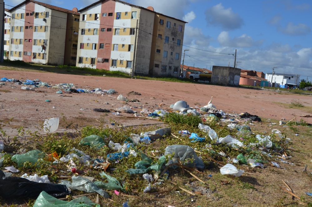 “Tem coleta na terça, na quinta e no sábado e de mês em mês eles fazem a limpeza, mas os moradores jogam o lixo aí”, comenta Marcela da Silva Araújo, 26. “Joga porque não tem um tonel para a gente colocar o lixo. Aí os moradores jogam na praça porque não vai ficar com o lixo dentro de casa. Se tivesse tonel aí, ninguém jogava o lixo na praça”, reage a irmã dela, Maiara da Silva Araújo, 25.