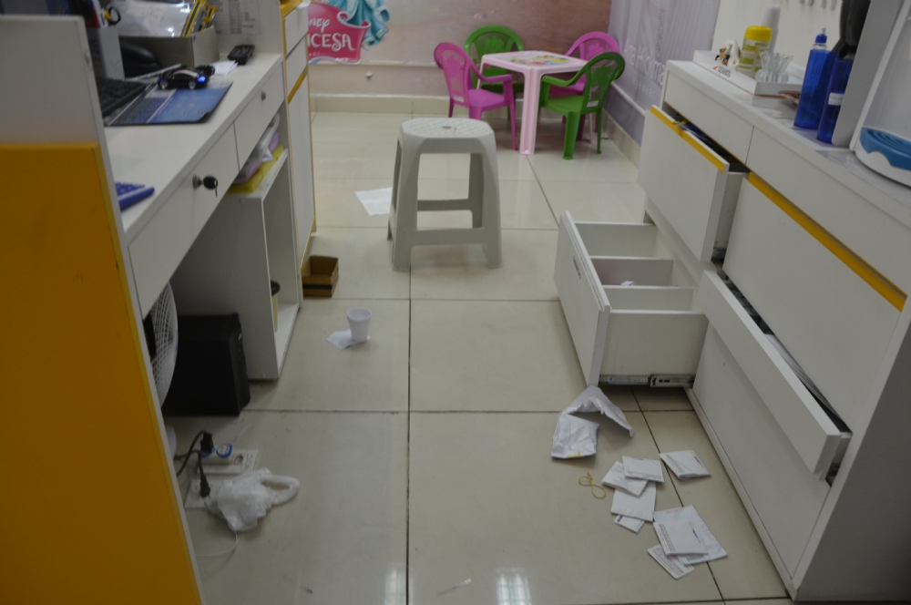 O empresário Saulo Farias só entrou na loja no início da manhã desta terça-feira, 25, e percebeu que também fora vítima da ação dos ladrões. “Eles arrebentaram o caixa, levaram dinheiro, óculos, abriram a geladeira, levaram mantimentos e ainda tomaram cafezinho”, revelou, em conversa com a equipe do Portal Infonet.
