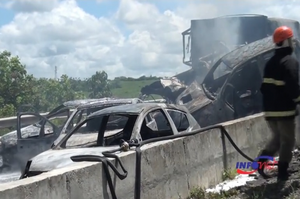| Bi-trem colidiu em diversos veículos provocando explosões (Foto: arquivo Portal Infonet) |