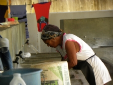 De acordo com a lavadeira, o terreno é cheio de ratos e as trabalhadoras do local temem pela saúde. “Em dia de chuva, a gente trabalha aqui com medo de pegar algum tipo de doença grave, porque têm esses ratos passeando por aqui”, comenta. Quem também reclamou das condições de trabalho foi a lavadeira Sebastiana Alves Bezerra, 56 anos. “Essa reforma que fizeram piorou a situação, porque a água fica empoçada logo na entrada e nas laterais do lugar”, explica. Sebastiana também relatou que para entrar no local é preciso improvisar uma passagem. “Se a gente não colocar uma pedras e um pedaço de madeira por cima, a gente não consegue entrar com as roupas. É um sofrimento toda vez que chove”, lamenta.