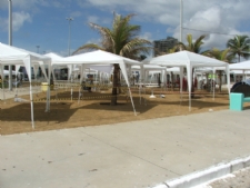 No estacionamento, automóveis de Itabuna (BA), Brasília, Recife, Belo Horizonte, Salvador, Campinas (SP) e Fortaleza, por exemplo. De Feira de Santana veio um grupo que há três anos não deixa de virar o ano em Aracaju. “Estamos guardando lugar aqui e hoje chega a galera completa”, conta Robson. Organização Um grupo da Empresa Municipal de Serviços Urbanos (EMSURB) está no local ajudando a organizar a distribuição de tendas pela praia. Até o momento, cerca de 200 barracas já foram montadas na região mais disputada, nas proximidades do palco principal e as vagas estão limitadissímas. Nenhum valor deve ser cobrado pelo serviço. Por Glauco Vinícius e Aldaci de Souza
