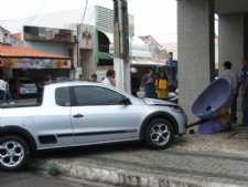 dois orelhões instalados na calçada do Edifício Paulo Figueredo. Os telefones públicos foram praticamente arrancados com o impacto.