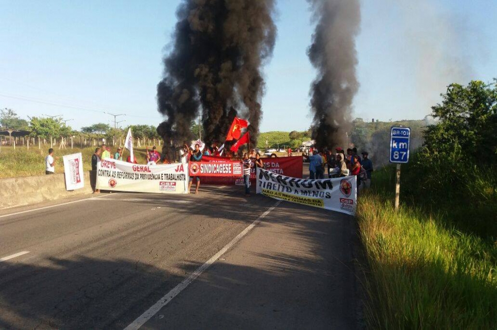 Manifestantes bloquearam dois trechos da BR 101, em Sergipe. Os manifestantes estão concentrados na altura do km 69, em Maruim, e também no km 87, no trevo de acesso ao município de Nossa Senhora do Socorro. O trânsito é lento, mas flui. De acordo com informações da Polícia Rodoviária Federal, os manifestantes realizam uma espécie de pare e siga nestes dois pontos da rodovia federal.