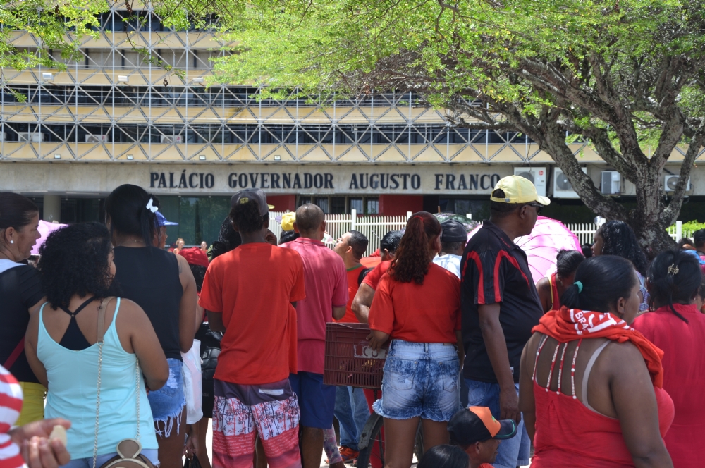 Um grande grupo de integrantes do Movimento Trabalhadores Sem Teto (MTST) protestou por moradia, no final da manhã desta quinta-feira, 18, em frente ao Palácio dos Despachos, nas proximidades do Distrito Industrial de Aracaju. Os manifestantes que hoje ocupam uma região no bairro Japãozinho, na zona Norte de Aracaju, cobram do Governo do Estado um projeto de moradia que atenda as 1.500 famílias daquela ocupação.