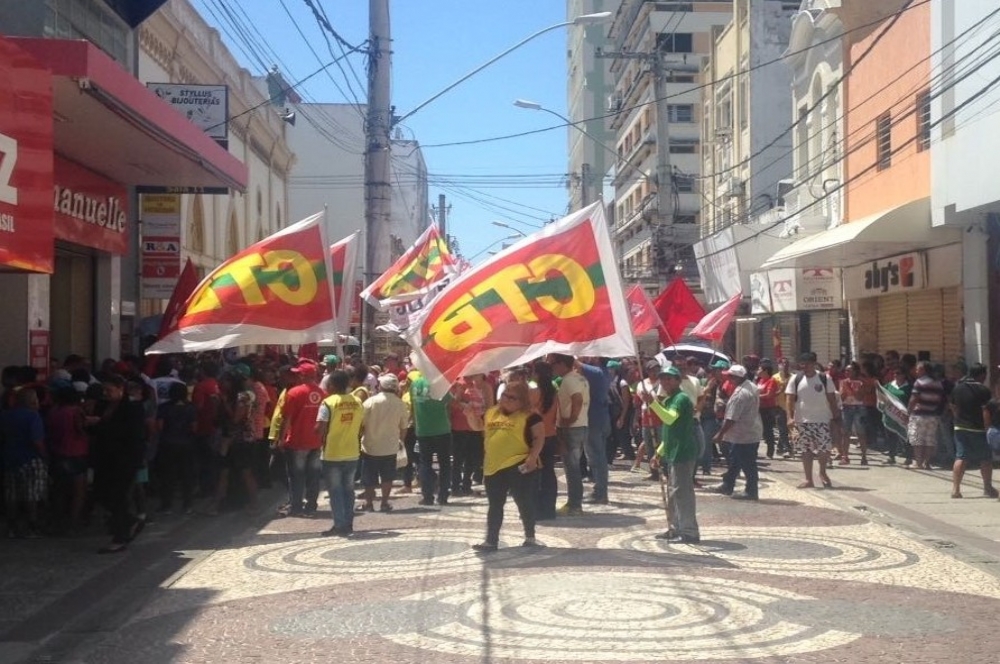 Os manifestantes que se concentravam nas praça General Valadão desde às 7h da manhã já protestam pelos calçadões do centro de Aracaju.