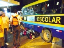 Uma manobra proibida realizada por um motorista de ônibus escolar resultou em um acidente na noite da última quarta-feira, 30, no cruzamento entre a Hermes Fontes e a avenida Barão de Maruim, no centro da capital.