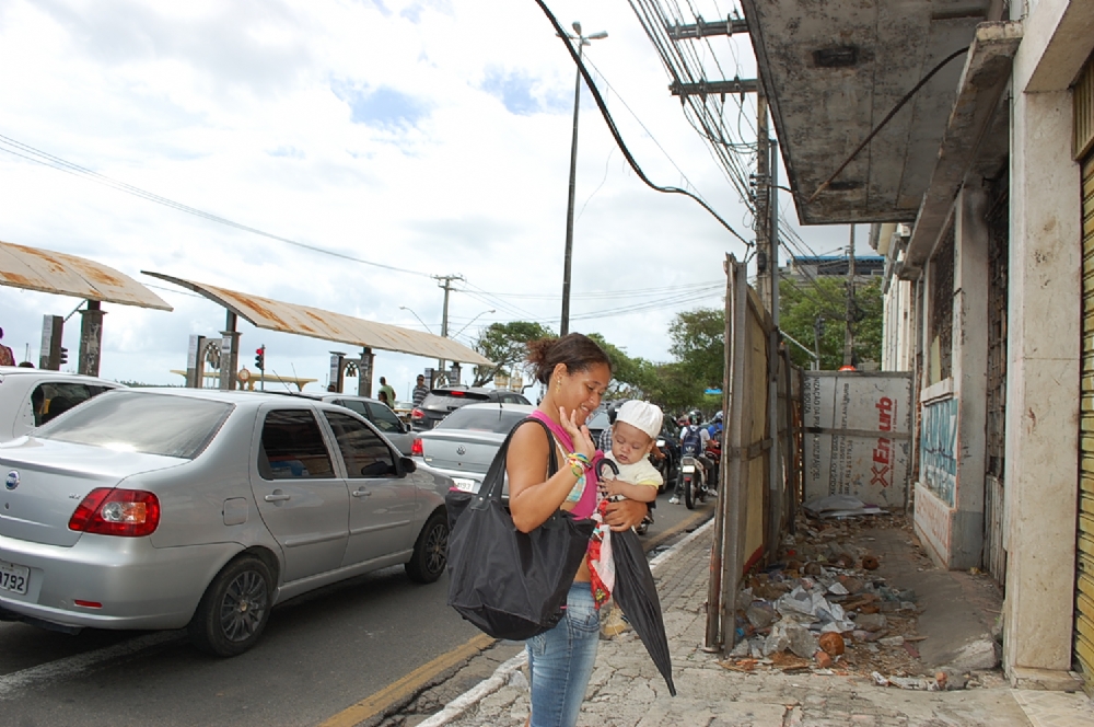 Assim como a dona de casa, a revendedora de cosméticos Aline Jayane Santos Souza se aproximou da marquise. “Não, não tenho medo nenhum. Acho que tá seguro”, disse, quando ainda estava um pouco distante do tapume. “Ih!, mas nem tanto assim seguro, né?”, reagiu, quando se aproximou do tapume e percebeu o estado da marquise.