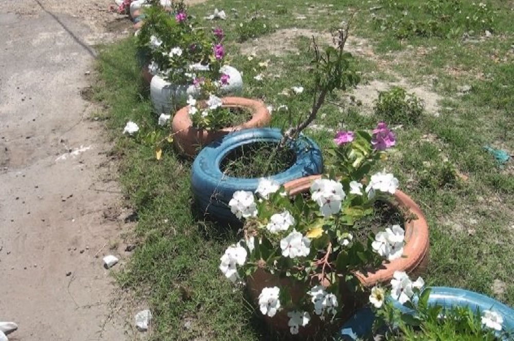| Antigo lixão dá lugar a uma praça ornamentada com pneus reciclados e mudas de flores (Foto: Portal Infonet) |