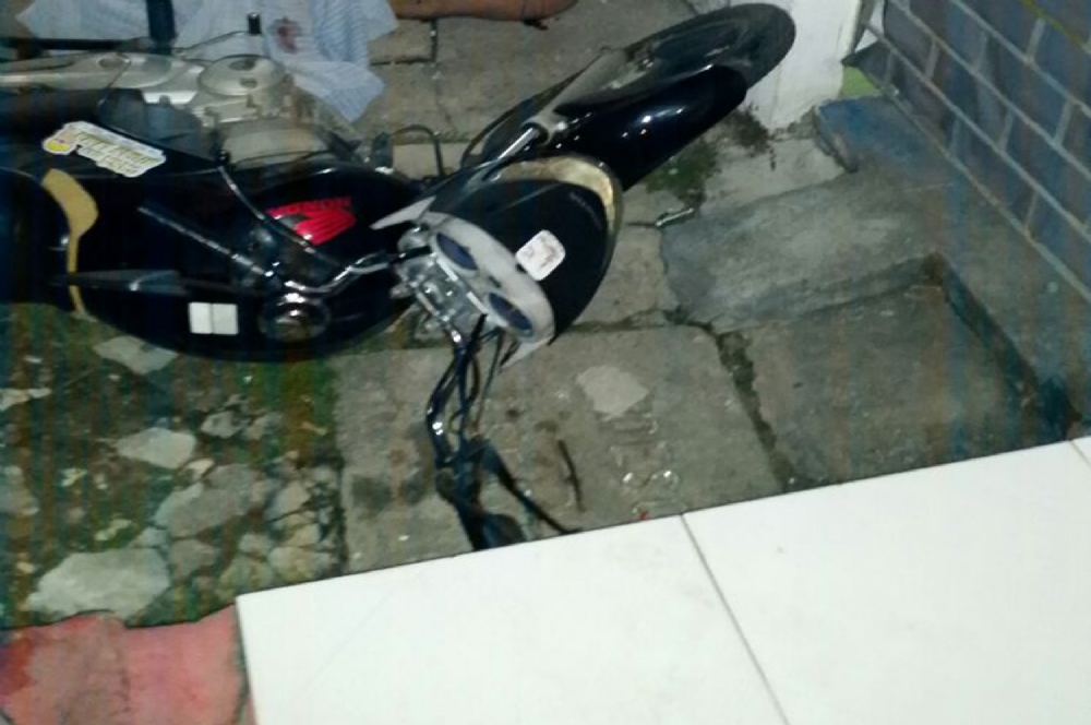 | Corpo de motoboy, ao lado desta moto, estava sem roupas (Foto: PM) |