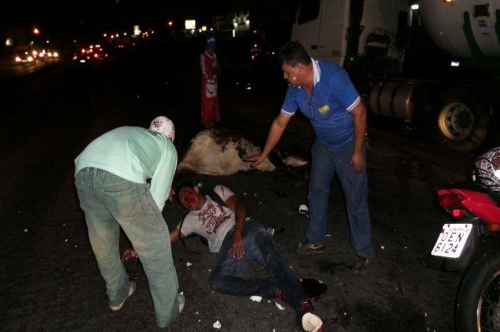 De acordo com informações do policial rodoviário federal, José Teixeira, o homem ferido pilotava a motocicleta quando colidou com o animal. “Ele estava pilotando a moto quando atingiu o a vaca, que estava na pista. Ainda não temos maiores informações sobre o estado de saúde e o nome do motoqueiro, pois, a equipe ainda está no local do acidente. Somente quando a equipe voltar é que teremos mais detalhes”, afirma.