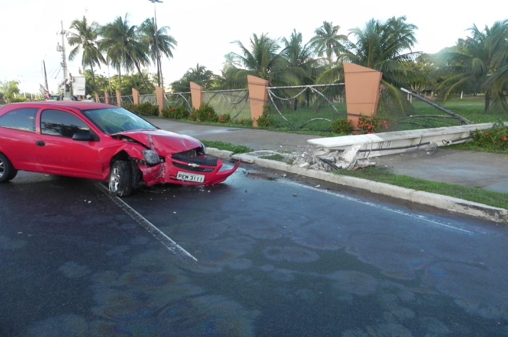 Na manhã desta quarta-feira, 29, o motorista de um celta vermelho cochilou no volante e colidiu em um poste na avenida Beira Mar, em frente ao Parque da Sementeira. A Superintendência Municipal de Transporte e Trânsito (SMTT) isolou a pista temporariamente por causa da grande quantidade de óleo no local.