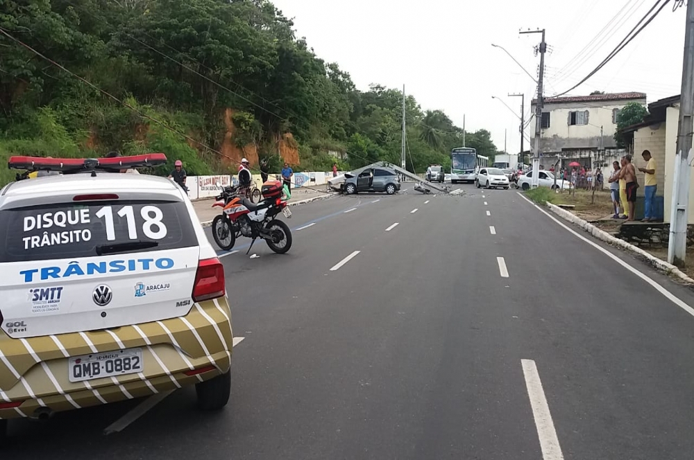 O veículo colidiu com o poste de iluminação (Fotos: WhatsApp Sergipe Notícias)