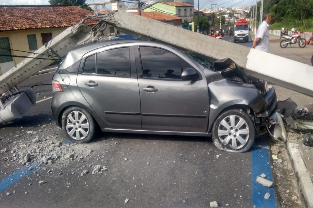 Uma motorista perdeu o controle do veículo e colidiu com um poste de iluminação na avenida Euclides Figueiredo sentido Centro, na manhã desta quarta-feira, 30.