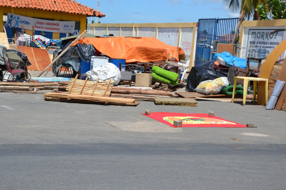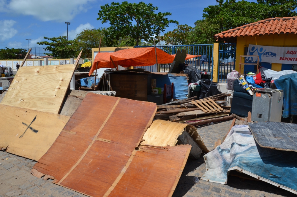 A visita do oficial de justiça aconteceu por volta das 15h, segundo Vagner Gonçalves Oliveira, uma das lideranças do Motu. “Eles chegaram aqui e deram prazo de uma hora e meia para a gente tirar os barracos, mas a gente só veio tirar por volta das 6 horas da tarde”, conta. Sem opção, os sem teto passaram a ocupar a calçada de um estádio, em local bem próximo ao terreno da prefeitura, onde as famílias do Motu estavam instaladas.