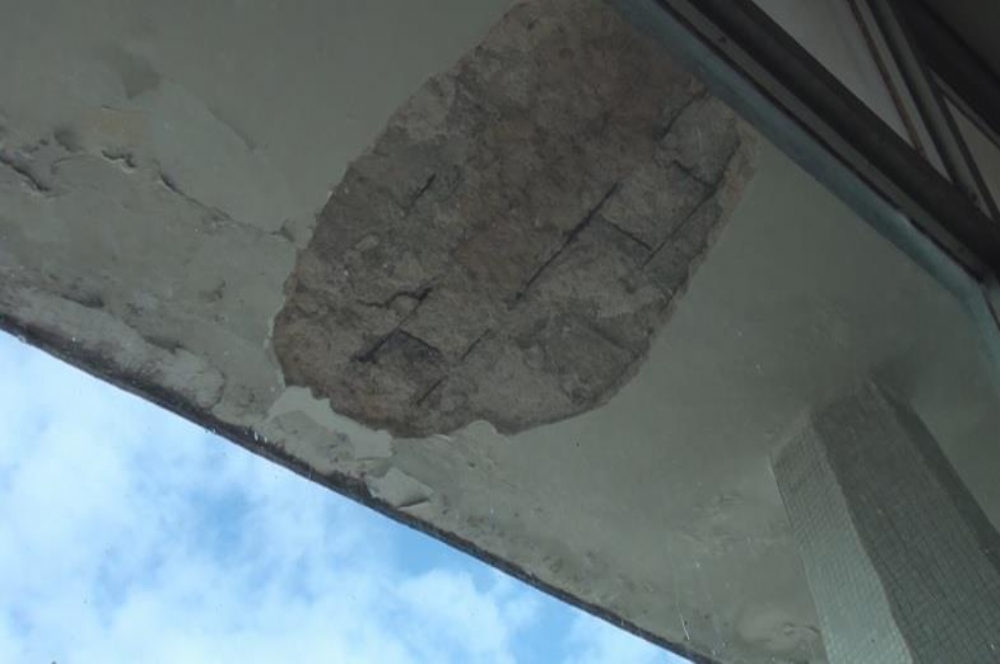 | Pedaço do teto caiu, mas não deixou vítimas (Foto: Portal Infonet) |