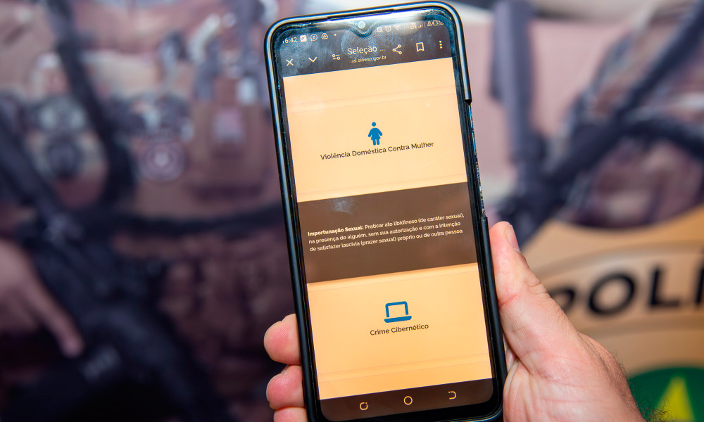 Ainda no local, a vítima formalizou a denúncia por meio do Projeto Poly, plataforma da Delegacia Virtual da Mulher que permite registrar ocorrências e solicitar medidas protetivas on-line. Utilizando o próprio celular, ela gravou o vídeo declaratório e solicitou imediatamente Medida Protetiva de Urgência, sem precisar se deslocar até uma delegacia.