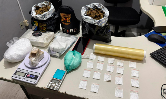 Diante do flagrante, os militares entraram no imóvel, onde localizaram uma grande quantidade de drogas, embalagens utilizadas para o acondicionamento dos entorpecentes e dinheiro em espécie.