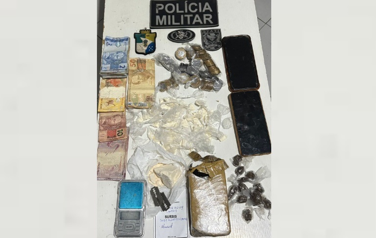 Durante buscas no imóvel, os policiais apreenderam, no quarto da suspeita, uma maleta plástica contendo duas lâminas, uma balança de precisão, cinco trouxinhas de maconha e 37 trouxinhas de cocaína, além de sacos plásticos utilizados para embalar os entorpecentes. No mesmo cômodo também foram encontrados dinheiro em espécie e um cartão.