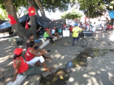 As mulheres arrastaram seus filhos e companheiros para um acampamento improvisado na praça da Cruz Vermelha, no bairro Siqueira Campos, em Aracaju, onde estão desde quarta-feira, 10, e ficam até sexta, 12. A iniciativa é das lideranças femininas do Movimento dos Sem Terra (MST) e Movimento Organizado dos Trabalhadores Urbanos (Motu). No acampamento estão expostos trabalhos artesanais das mulheres que são membros de algum dos grupos, como peças de renda e pinturas. Para dona Tereza dos Santos, do MST, o protesto é uma forma das pessoas verem a céu aberto a luta das mulheres em conseguir dinheiro para contribuir no sustento de sua família, além de dar conta das atividades domésticas e educação dos filhos.