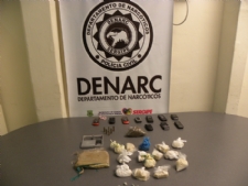 Segundo a delegada, Sidilânia Correia da Silva Santos, 27 e Maria Cláudia Salustiano dos Santos, 32 moravam juntas e os esposos estão presos [um por tráfico de drogas e o outro por homicídio]. “Nós recebemos denúncia e após investigações, constatamos que Sidilânia foi buscar a droga na cidade de Paulo Afonso, na Bahia, tendo chegado na última segunda-feira, 5. O crack seria vendido no Centro de Aracaju”, relata Aliete Melo acrescentando que as duas já foram garotas de programa na Espanha. Ainda nesta quarta-feira, 7, integrantes da Força Tática do Batalhão de Choque prenderam um traficante de maconha [Jonathan Silva, 22] e dois usuários [Elisson Silva Souza, 21] e Alberto Rocha Santos, 22]. De acordo com o tenente Nelson Eron, da Força Tática do Batalhão de Choque, receberam uma denúncia anônima de que estava havendo o tráfico no Alto da Bela Vista, no bairro Santos Dumont. “Foi montada uma operação no Morro da Reação e na abordagem os três tentaram evadir-se do local, mas conseguimos detê-los na entrada da vila”, relata o Em uma bolsa que estava com o acusado de tráfico, Jonathan, a polícia encontrou seis dólares de maconha, mais 28 trouxinhas. Os dois usuários foram liberados após depoimento no Denarc. Por Aldaci de Souza