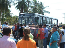 Os problemas de transporte dos ônibus pela Ponte Barra-Aracaju parecem estar temporariamente resolvidos. Foi estabelecida nesta manhã uma negociação com a empresa Rotasul, que começou a transportar passageiros de Aracaju para a Barra dos Coqueiros, após os protestos de taxistas, moto-taxistas e funcionários da empresa de ônibus Via-Norte, habilitada ao transporte na Barra. Manifestantes no momento em que param um ônibus