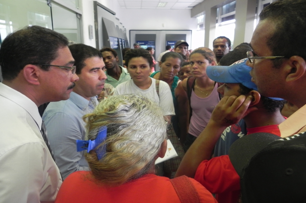 Diferente do que aconteceu no prédio do Instituto Nacional de Seguridade Social (INSS), representantes da Caixa Econômica Federal de Sergipe, agiram rápido e a ocupação na CEF da Av. Hermes Fontes durou pouco mais de 40 minutos. Ex-moradores do conjunto 17 de Março, no bairro Novo, saíram do INSS da Av. Carlos Firpo na manhã desta terça-feira, 16, direto para a agência da Caixa.