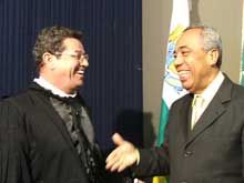 A cerimônia foi presidida pelo presidente interino do Tribunal, desembargador José Alves Neto, e contou, na mesa, com as presenças do governador do Estado, João Alves Filho, e com o presidente da Assembléia Legislativa do Estado, Antônio Passos, além dos outros desembargadores que compõem o órgão. O prefeito de Aracaju, Marcelo Déda, bem como o ex-governador Albano Franco, também estiveram presentes à solenidade. Após Luiz Mendonça prestar juramento e assinar o termo de posse, a desembargadora Clara Leite de Resende lhe deu as boas vindas e ressaltou a responsabilidade do mesmo ao assumir a vaga deixada pelo desembargador Fernando Ribeiro Franco, que faleceu em maio deste ano. “Ele assume um lugar de um homem que deixou marcas. Isto representa uma árdua missão, que acresce ainda mais a responsabilidade aos seus ombros”, frisou a desembargadora, que também elogiou longamente o trabalho realizado por Fernando Franco em vida. Durante o discurso, Mendonça aproveitou para falar sobre a importância do papel do Poder Judiciário. Segundo ele, neste momento em que pipocam diversas denúncias de corrupção no país, a esfera deve dar exemplo no procedimento. “É nessa hora que se agiganta o papel do Judiciário”, afirmou. Luiz Mendonça também garantiu estar preparado para a nova função. “Sei que a responsabilidade de julgar, dentre as outras, é a maior. E não é fácil fazer justiça. Sei que recai, sobre os meus ombros, uma responsabilidade imensa. Mas tenho certeza que Deus haverá de iluminar nosso trabalho. Iremos trabalhar em prol da sociedade, sempre tendo como marcas a tranqüilidade, a determinação e a dedicação”, afirmou. “Nós só estamos pedindo que ele nos ouça e nos ajude a encontrar uma solução para a situação que nos encontramos. Nós fizemos o concurso e fomos aprovados, mas tomamos conhecimento de uma série de irregularidades que estão acontecendo. Só queríamos que o governador nos ouvisse”, explicou Alex Nascimento, um dos organizadores do protesto. Apesar das faixas e palavras de ordem, o governador não parou para conversar com os manifestantes, que após sua saída, ficaram revoltados. Os manifestantes afirmam que, entre as supostas irregularidades, está a contratação de alguns candidatos – que fizeram o concurso e passaram nas últimas colocações – antes de outros que também passaram e ficaram em colocações melhores. “Também sabemos de casos de pessoas que entraram na Justiça contra o Estado e, por conta de apadrinhamento político, foram chamadas”, acusa Nascimento.