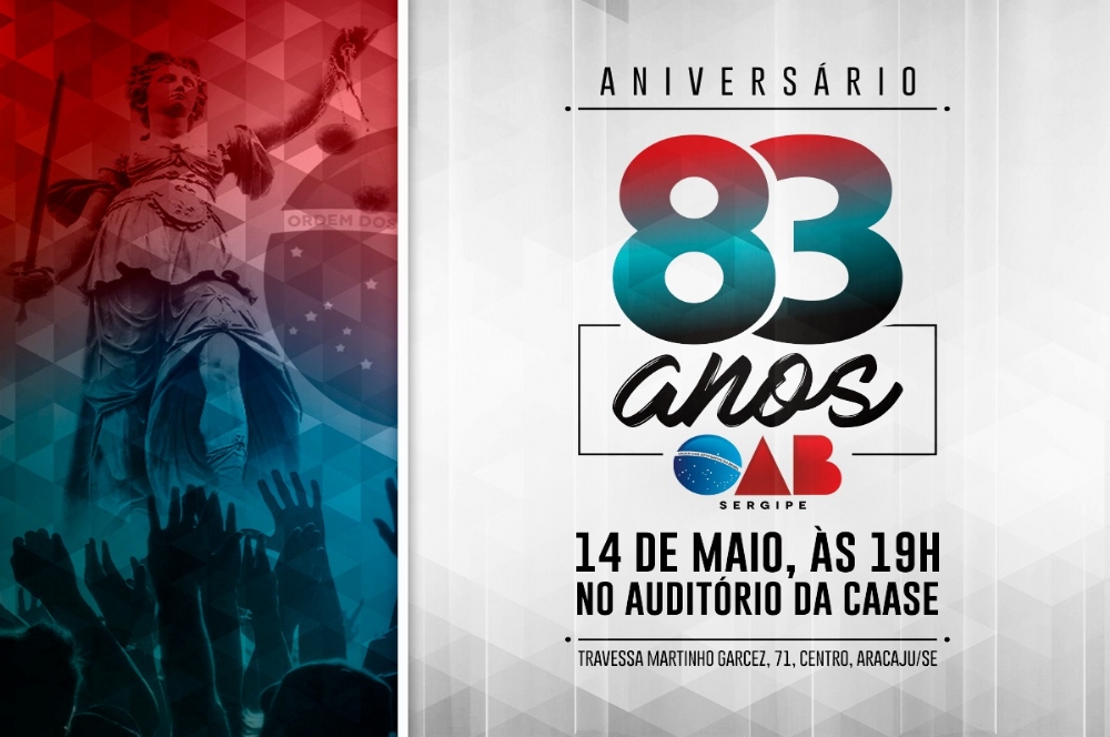 Neste mês, a Ordem dos Advogados do Brasil, em Sergipe, celebra 83 anos de uma história marcada pela defesa da advocacia, da cidadania e da justiça social. Para comemorar, a seccional realizará na próxima segunda-feira, 14, às 19h, uma sessão especial que homenageará ex-dirigentes da Ordem, da Caixa de Assistência dos Advogados (CAASE), do Tribunal de Ética e da Escola Superior de Advocacia.