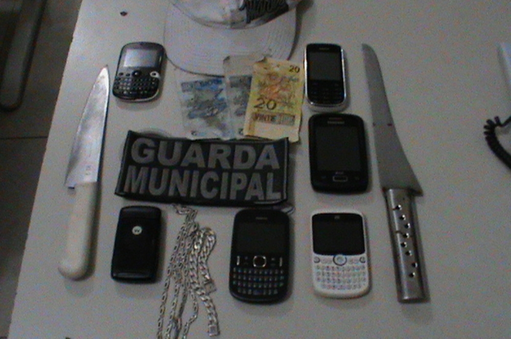 | Objetoa apreendidos com menores (Foto: Divulgação GM) |