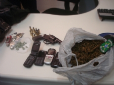 Entre os objetos apreendidos estavam 400 gramas de maconha, 20 pedras de crack, um revólver calibre 32, celulares, bolsas de vítimas de assalto, pen-drive, relógios e uma moto que era utilizada para prática de assaltos.