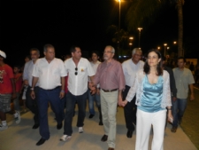 O prefeito Edvaldo Nogueira e sua comitiva seguiram por todos os 600m de pista da Orla Pôr do Sol, com destino a um palco erguido para o pronunciamento. Segundo o prefeito, a nova orla é o resultado de um investimento de R$ 5.426.000, 00, com recursos do Governo Federal. Odilon Gomes, presidente da Associação de Moradores do Mosqueiro