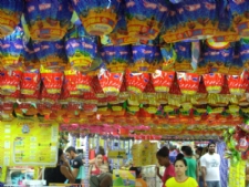 Faltando um mês para a Páscoa, as lojas de departamento estão completamente enfeitadas com o artigo que mais vende, os ovos de chocolate. No entanto muitos consumidores ainda passam alheios às embalagens coloridas. Os preços contribuem para que a tentação da época não supere a consciência econômica do consumidor. Licélia com o filho de 4 anos olhando os produtos