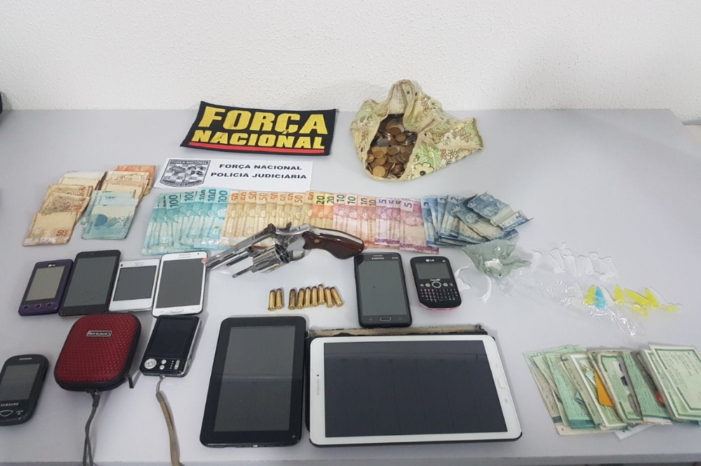Com os dois acusados, os policiais encontraram cocaína, aparelhos de telefone celular, dinheiro [montante não revelado] e também um revólver de calibre 38. A arma, conforme a SSP, estava com Dinho. Com eles, também havia embalagens apropriadas para armazenar cocaína destinada à comercialização, conhecidas como pinos, váriois documentos de identidade de outras pessoas.