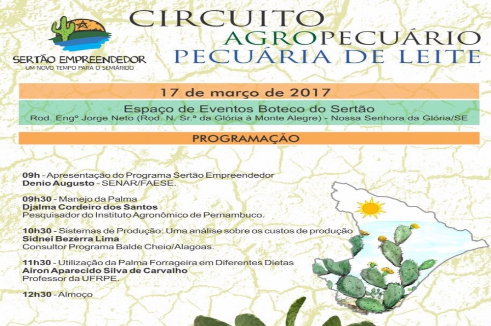 Com base nesse objetivo é que foi desenvolvido o tema do Circuito. “A temática deste evento é a palma, pois não se convive na região do semiárido sem essa opção para alimentar o rebanho leiteiro. O agricultor leiteiro pode ter a silagem, o feno ou outra alternativa, mas não vive sem a palma. Este evento foi pensado com este tema, pois, estamos às vésperas da época do plantio”, explica o superintendente do Serviço Nacional de Aprendizagem Rural – Senar Sergipe, Denio Leite.