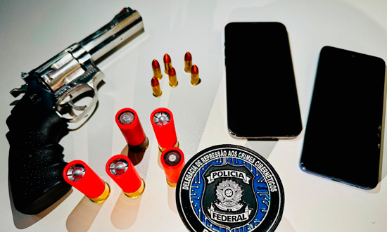 Além do material digital, os policiais encontraram uma arma de fogo sem registro. Diante do fato, o investigado foi preso em flagrante pelo crime de posse ilegal de arma de fogo e encaminhado à Superintendência Regional da Polícia Federal para os procedimentos cabíveis.