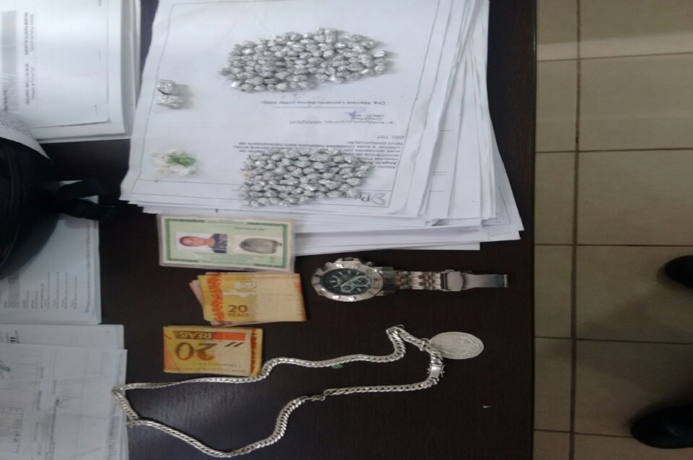 Com o suspeito, a equipe da PM encontrou uma quantidade de cocaína e R$ 200 em espécie. Depois de conduzido à Delegacia de Polícia Civil na Atalaia, os policiais seguiram à residência do acusado e lá encontraram a esposa dele, que permitiu a revista.