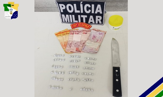 Diante da fundada suspeita, os militares realizaram a abordagem. Durante a busca pessoal na bolsa que ela carregava, foram encontradas 86 pedras de crack, além de R$ 105,00 em dinheiro e uma faca.