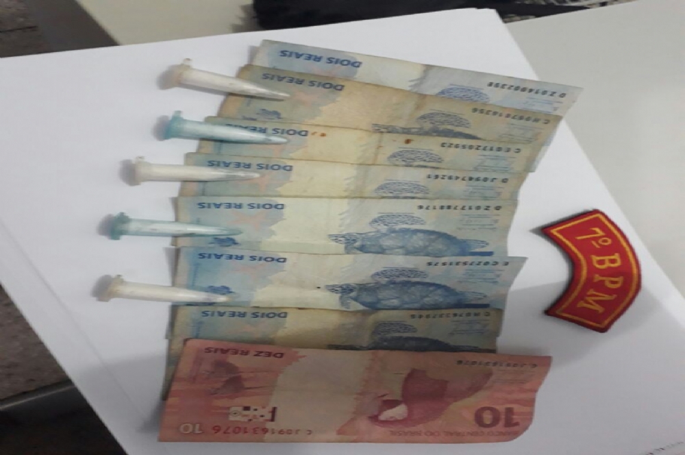 Com o suspeito, os policiais encontraram seis cápsulas contendo cocaína e apenas R$ 24 em espécie.