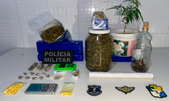 Na ação, 51 unidades de drogas sintéticas, duas porções de haxixe, além de balança de precisão, embalagens com porções de maconha e três tabletes de maconha prensada foram apreendidas pela equipe.