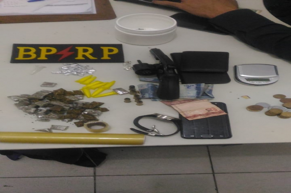 E, nas buscas pessoais, os policiais encontraram também um revólver de calibre 38, com seis munições intactas. Este revólver estava com o suspeito, que tem idade inferior a 18 anos. Os dois foram encaminhados para a Delegacia Plantonista. O mais velho foi autuado por tráfico de drogas e contra o adolescente, a Polícia Civil confeccionou um auto de apreensão por ato infracional semelhante ao crime de tráfico de drogas e posse irregular de arma de fogo.