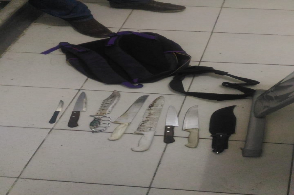 | Facas escondidas em sacola (Fotos: Rádio Patrulha) |