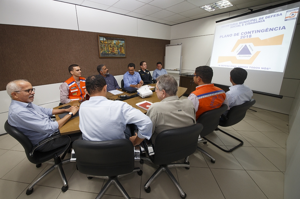 O prefeito Edvaldo Nogueira reuniu, nesta quinta-feira, 15, os membros do Comitê de Defesa Civil, responsável pelo gerenciamento de crises, para discutir as ações do Plano de Contingência para enfrentamento dos efeitos das chuvas em Aracaju. O trabalho, de caráter preventivo, prepara os órgãos da administração municipal para lidar com desastres, como alagamentos, enchentes e deslizamentos de terra.