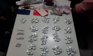 A equipe também encontrou 180 papelotes, 45 gramas de maconha, 120 reais em notas fracionadas, materiais para embalar a droga, uma carteira de identidade em nome de uma mulher e aparelhos celulares na residência.