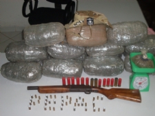 Na tarde dessa segunda-feira, 10, policiais militares do Pelotão Especial de Patrulhamento em Área de Caatinga (PEPAC) apreenderam quinze quilos de maconha, uma espingarda calibre 12, munições, uma balança, sementes de maconha e sacos plásticos e fitas adesivas utilizadas para acondicionamento da droga. Todo o material estava escondido em uma propriedade rural localizada no povoado Flor da Serra, no município de Poço Redondo.