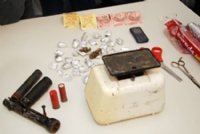De acordo com o delegado Flávio Albuquerque, foram encontrados com Adriano no momento da prisão 40 papelotes de maconha prensada, R$ 70,00 em cédulas de pequeno valor, uma arma caseira, duas tesouras, dois rolos de papel alumínio utilizados para acondicionar droga e uma balança de precisão.
