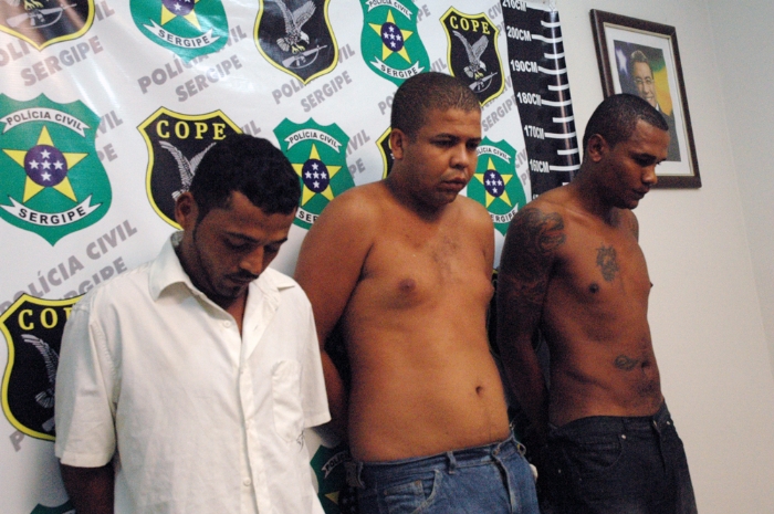 Foram presos Adenilson Machado, 32, conhecido como ‘Malazar’, Luiz Carlos Santos Neto, 26, apelidado de ‘Lulu’ e Carlos Eduardo dos Santos, o ‘Carlinhos’ de 32 anos. A prisão dos acusados aconteceu na última sexta-feira, 23, após uma investigação que durou cerca de um mês. A De acordo com o delegado André Baronto, eles estavam sendo investigados pela prática de diversos roubos que vinham acontecendo em residências e estabelecimentos comerciais localizados nos bairros Jardins, Inácio Barbosa, Salgado Filho, Leite Neto, Jabotiana e Centro. “No momento do flagrante nós os pegamos dentro de um carro modelo Ford Fiesta na Av. Desembargador Maynard quando se preparavam para mais um assalto. Eles foram surpreendidos e com eles foram apreendidos dois revólveres”, disse André. Nos roubos praticados em residências os criminosos faziam as vítimas reféns por mais de uma hora, enquanto subtraíam seus pertences, sempre sob ameaça de armas de fogo, em alguns casos os veículos também eram roubados e em seguida abandonados. André Baronto revelou que os três indivíduos saiam
